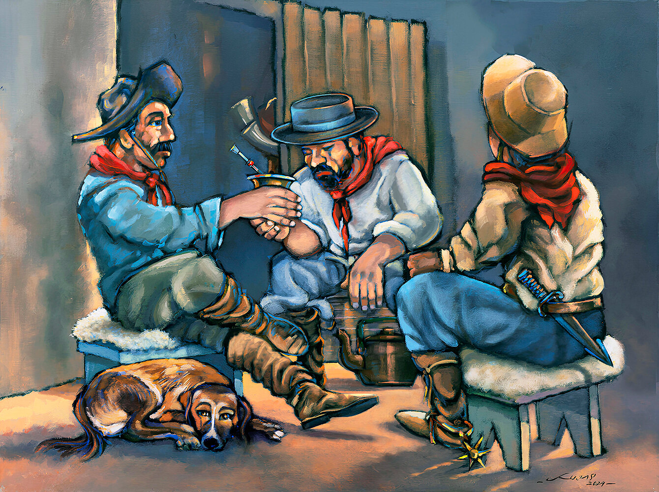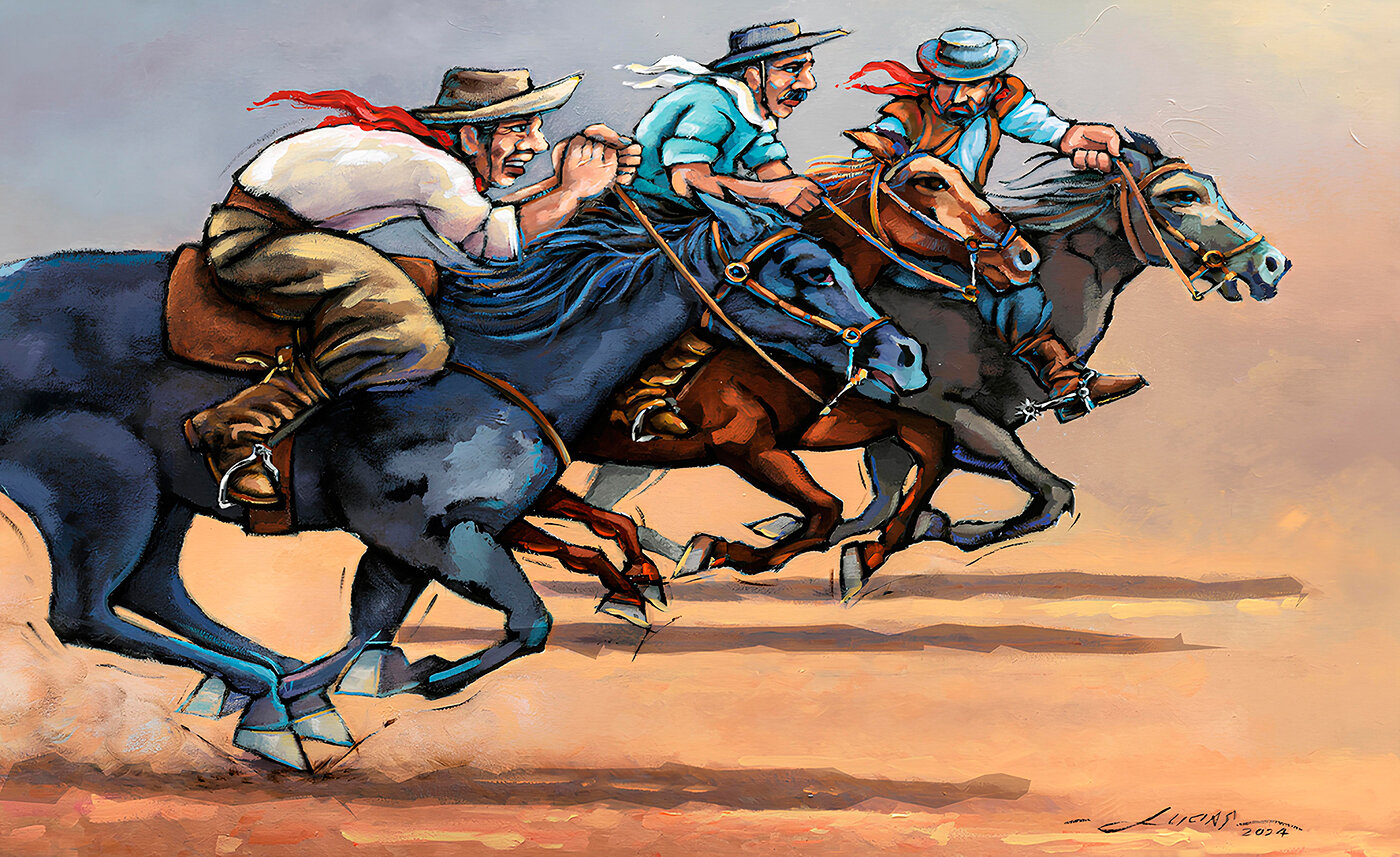 Portanto, atendi este honrado convite criando seis obras especialmente para esse evento, inspirado nas imagens que compõem o Universo Nativista, bem como nas demais manifestações que cultuam as Tradições Gaúchas, ricas em seu conteúdo histórico-cultural e em sua fascinante plasticidade.